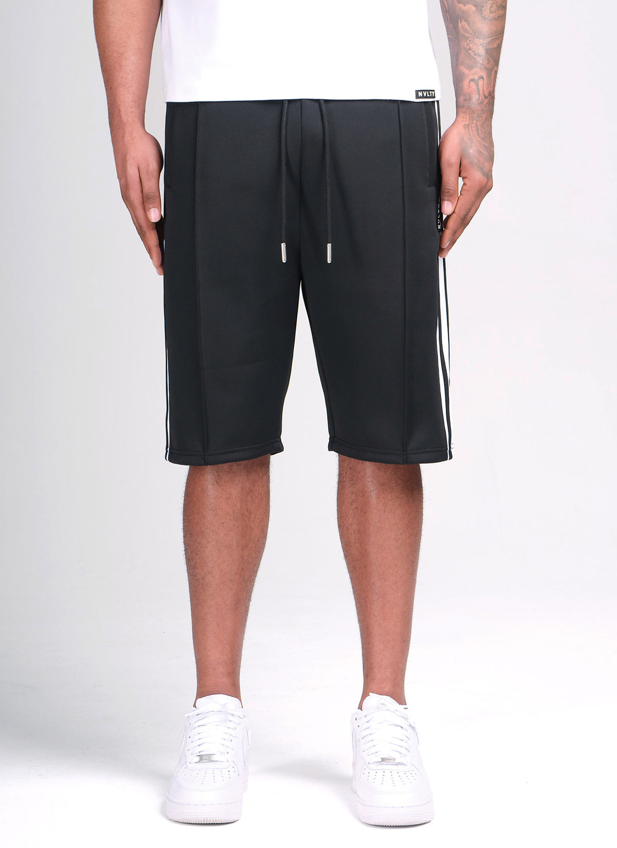 Panelled Luxe Track Shorts - Black