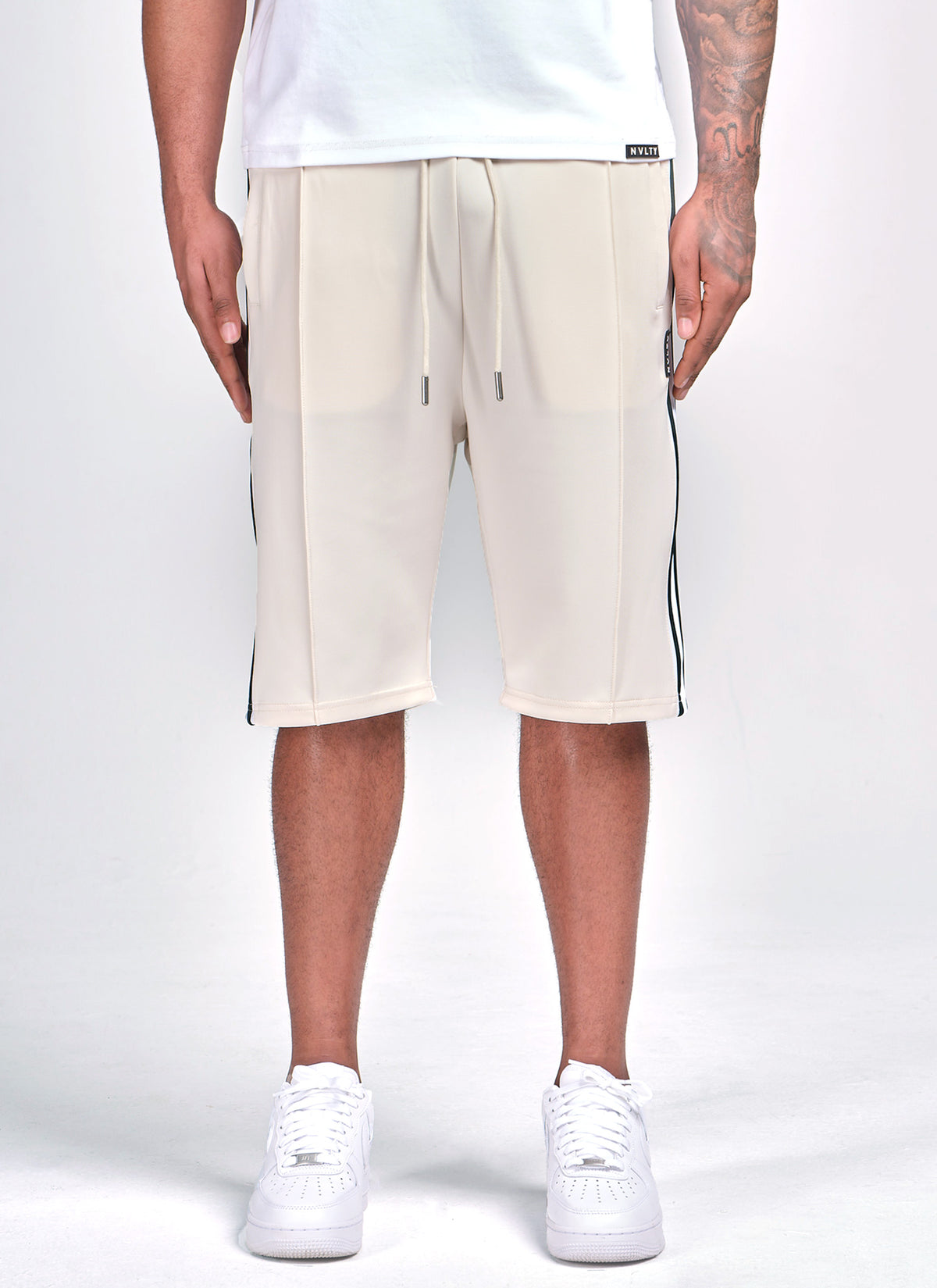Panelled Luxe Track Shorts - Ivory