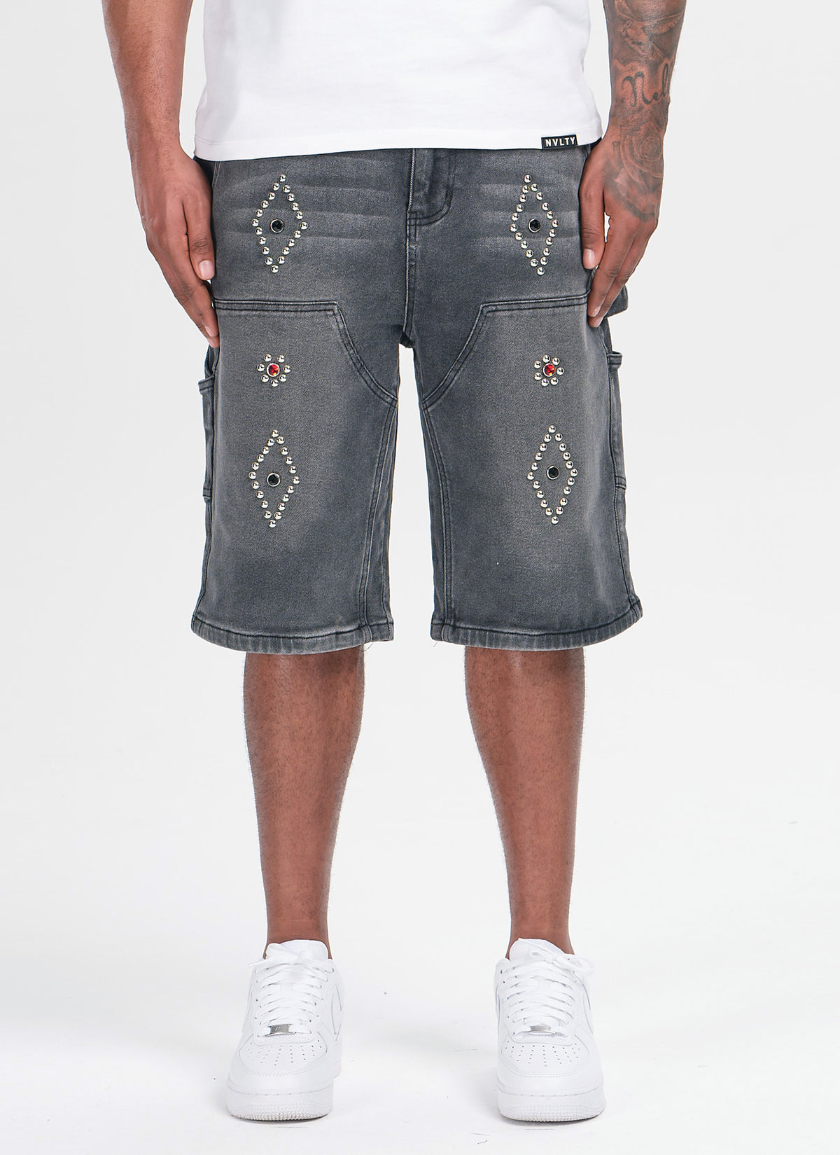 Vintage Carpenter Studded Denim Shorts - Black