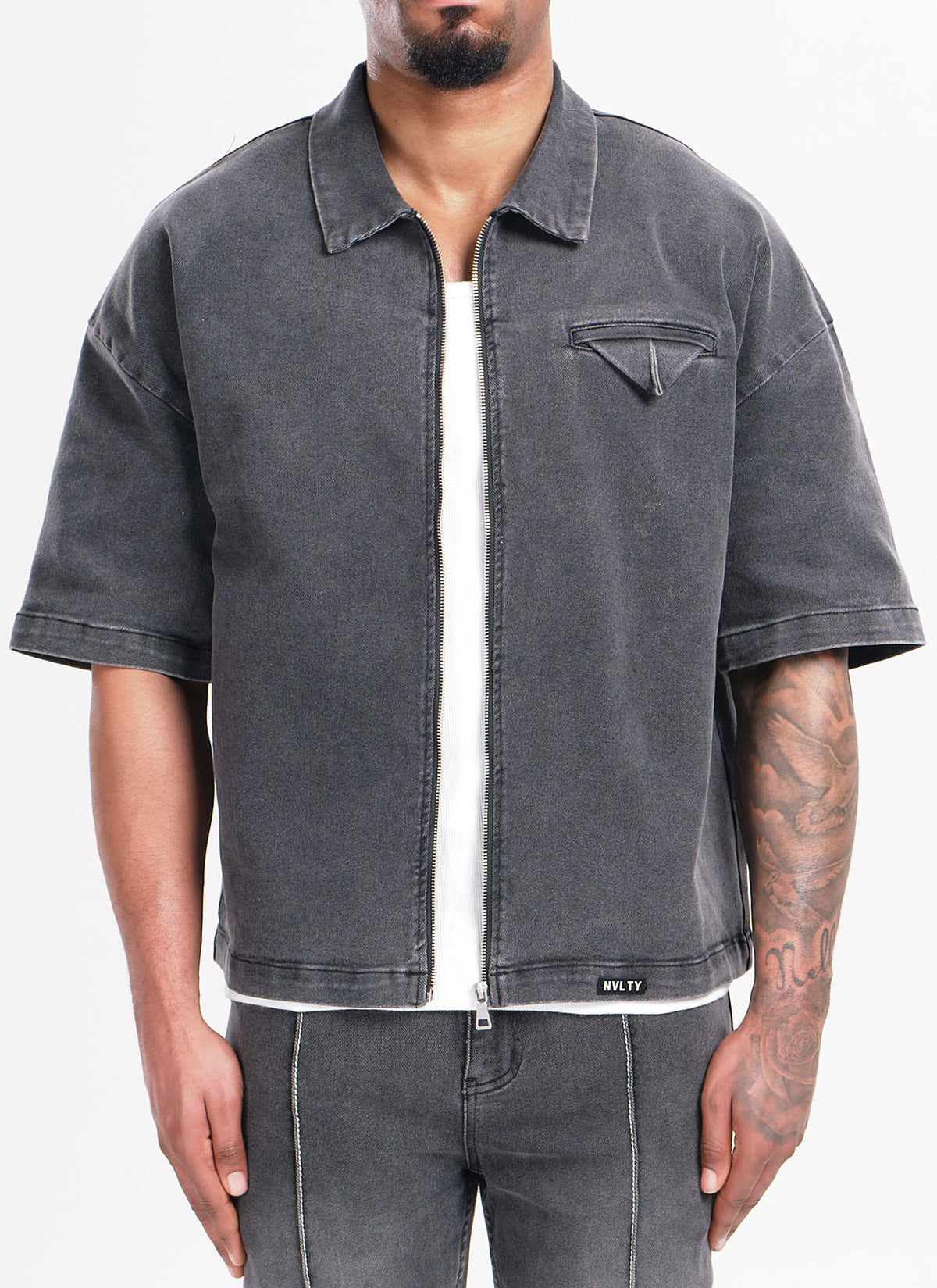 Vintage Pocket Square Denim Shirt - Grey