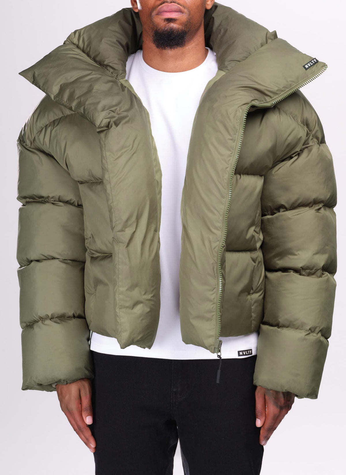 Vintage Shawl Collar Puffer Jacket - Khaki