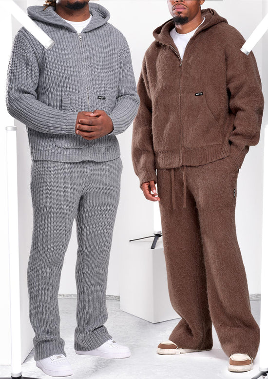 Heavyweight Knitted Joggers - Brown