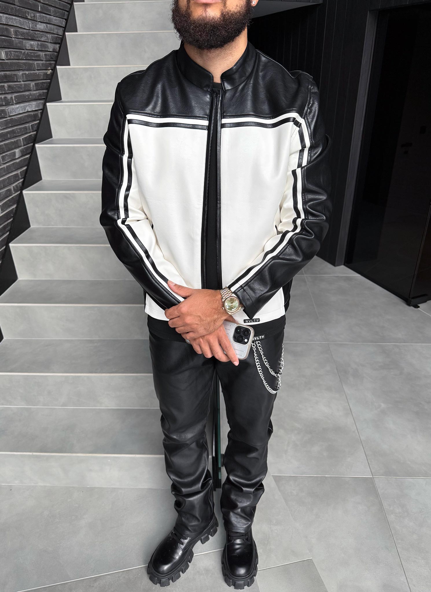 Moto Racer Biker Jacket - Black/Ivory