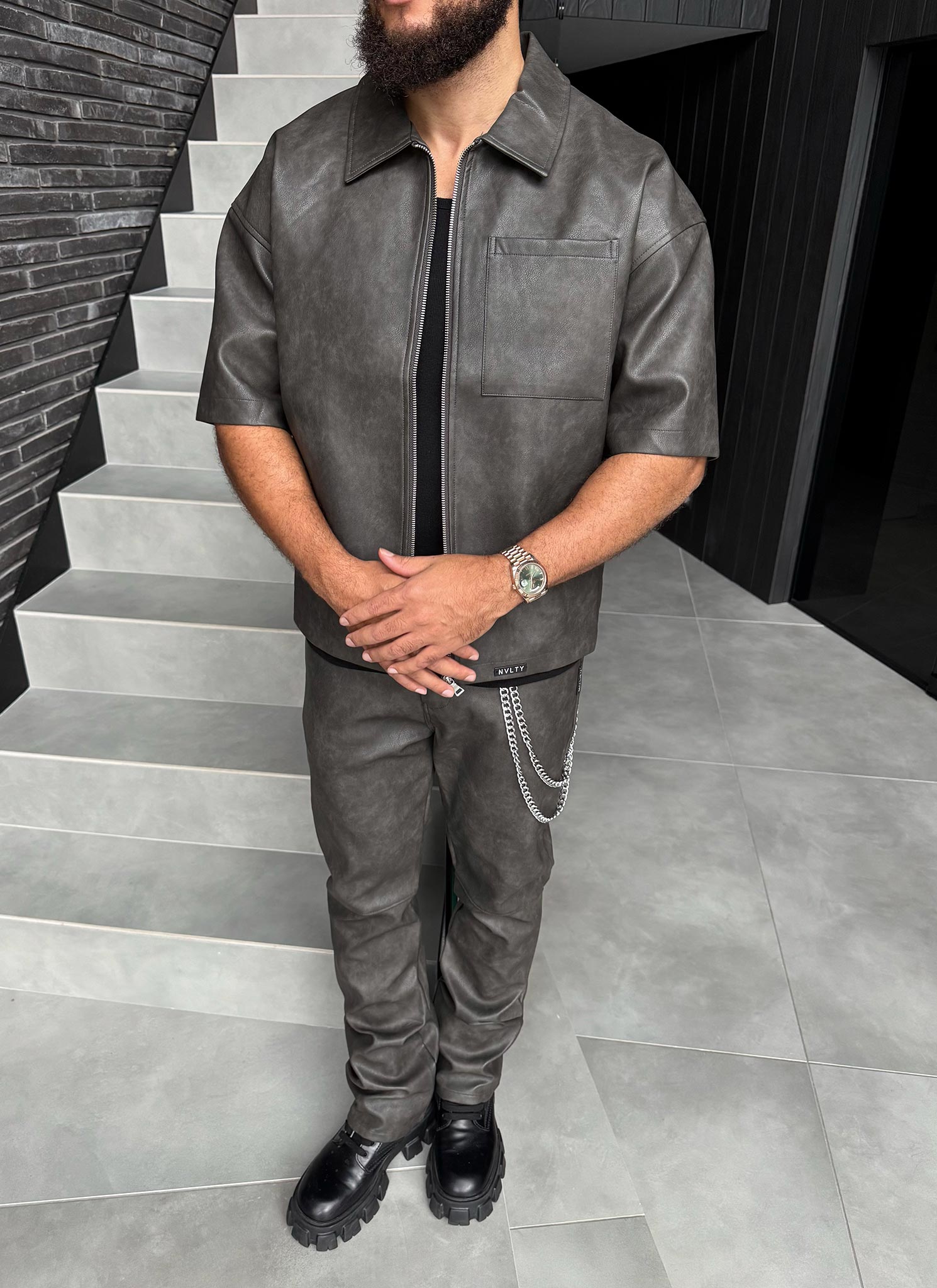 Created using a premium leather fabric, hand-made and tailored for a high-quality finish. The Vintage Heavyweight Leather Pants have a relaxed upper, which slightly tailors down towards the ankle.