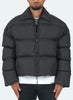 Featuring a high-quality nylon fabric, the Vintage Zipper Collar Puffer Jacket is loaded with high levels of puffer fabrication for optimum levels of warmth and insulation. The relaxed boxy fit and extra puffer within the jacket make for the perfect statement piece. The nylon jacket fabric is water-resistant. Chunky ribbed cuffs on the arm hem for ultra comfort; concealed pockets inside the jacket; the drop on the shoulder is sensational. The perfect combination of high-level aesthetics, quality and functionality for the winter months.