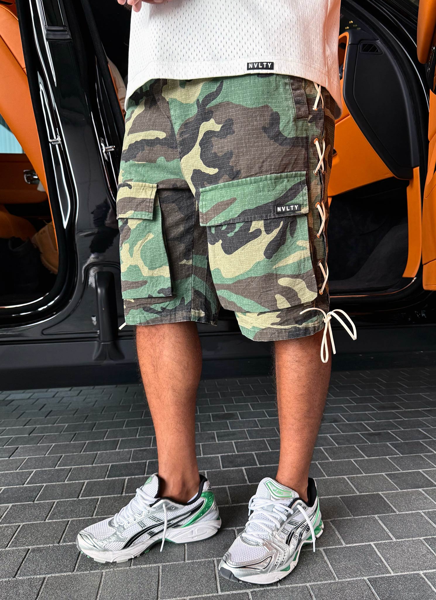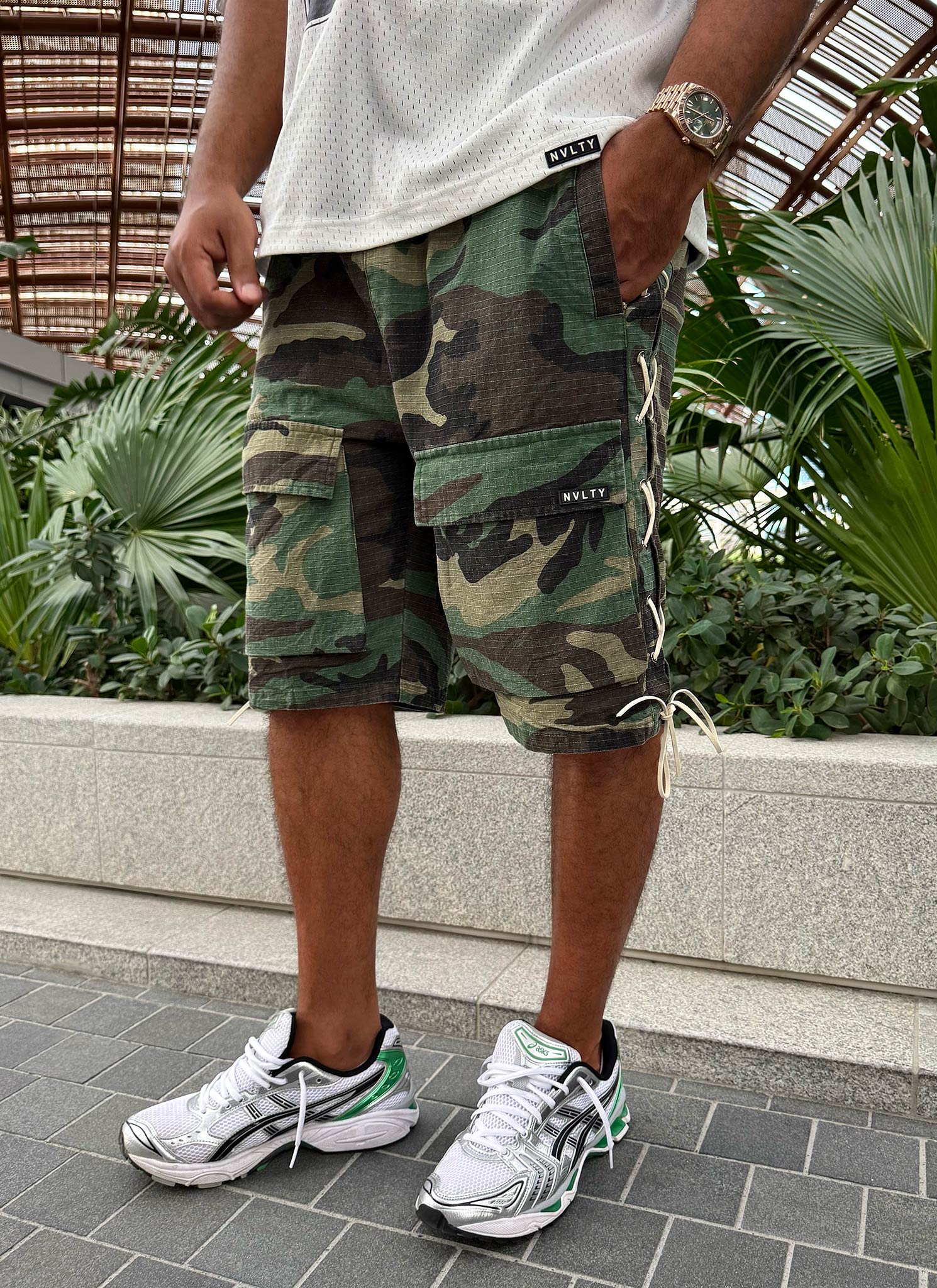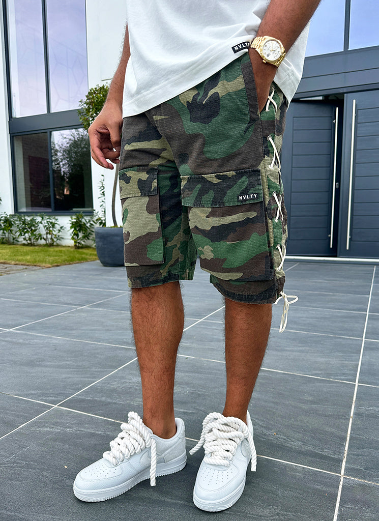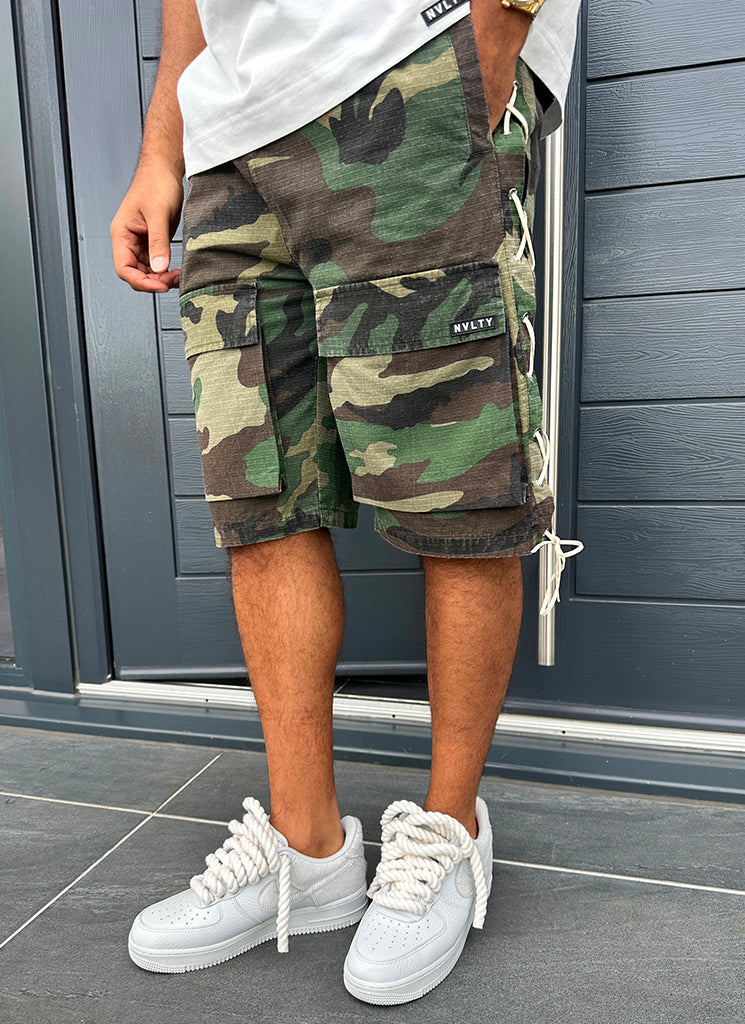 Featuring a twill construction, the Vintage Lace Cargo Shorts have a elasticated waist band and relaxed upper, which tailors down towards the knee to allow a straight leg fit. The cargo shorts feature a multi pocket cargo front pockets for the perfect militant feel. The cargo shorts are finished with a side lace system and a custom rubberised logo on the pocket flap.