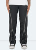 Featuring a high quality structured Nylon fabric, the Nylon Flare Zipper pants have a relaxed upper, which tailors down towards the ankle before the flare hem finish. Detailed with a high quality, heavy zipper from the back of the pants to the front hem. The zippers are adjustable to place in your desired position. High level craftsmanship. Finished off with a custom rubberised logo.