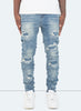 Featuring a strong stretch denim, the Triple Patchwork Jeans have a mid-skinny upper, which tailors down towards the ankle. Detailed with patchwork distressed details on the upper. Finished off with subtle custom paint details across the hem of the jeans.